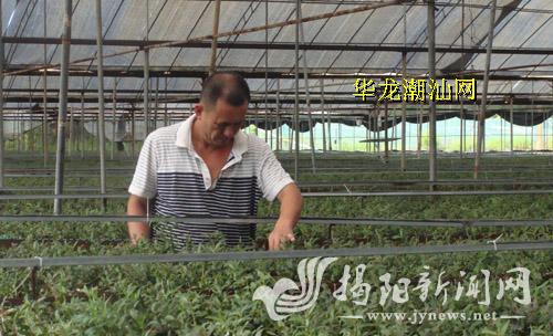 林文华在他的大棚里观察铁皮石斛的长势。黄健新 陈荣顺 摄