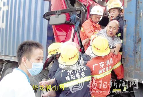 沈海高速惠来段两货车追尾 惠来消防救出被困者