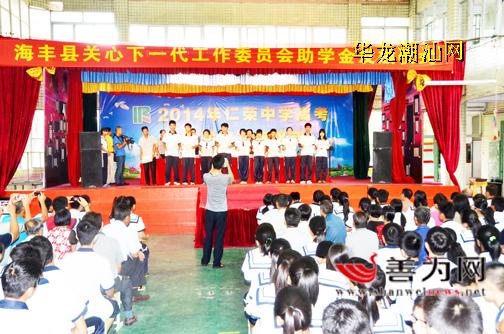 8月20日,海丰县仁荣中学举行2014年高考奖助学金颁奖仪式。该校23名考上重点一批院校的优秀学生和36名优秀贫困生获奖励和资助共20多万元。今年海丰县高考理科第一名龙铠豪和海丰中考第一名陈雨豪分别获得5000元和3000元。