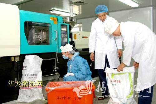 位于普侨区的广东集鑫塑胶制品有限公司是一家专业生产药用塑料包装材料(容器)的企业。该公司通过改造,生产车间达到10万级净化标准,主要生产设备全部采用符合国家标准的全自动电脑控制机型,检验中心配备了全套标准化的检验仪器设备,同时拥有一套严格控制的质量保证体系,有效保证产品的质量。图为制盖车间技术人员正在检验产品质量。