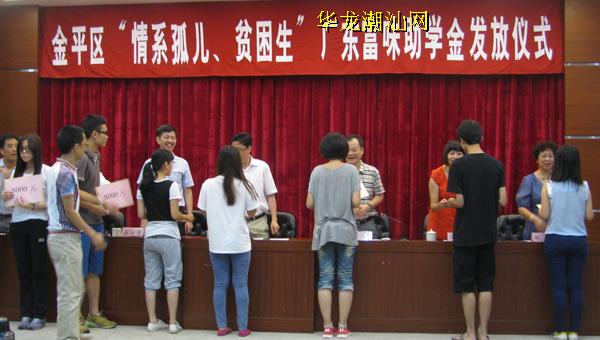 本报讯(记者 蔡晓丹 摄影报道)昨天下午,金平区“情系孤儿、贫困生”广东富味助学活动在金平区政府举行(如图)。记者了解到,从2009年起,广东富味制果厂有限公司每年拿出20多万,对金平区的孤儿学生、贫困大学生进行定向资助,其中孤儿大学生每人每年捐助8000元,直至他们大学毕业。