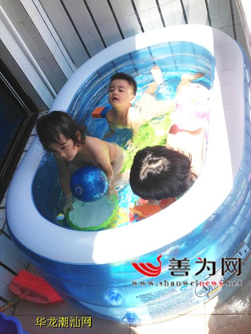 入秋的炎热是夏天的尾巴。连日来,城区天气仍显高温酷暑,炎热难耐。这不,年轻的汪妈妈抓住夏天的尾巴,利用家中的阳台开起了“戏水俱乐部”,让孩子们尽情享受 “夏日”的欢乐。图为小朋友们在尽情戏水降温,玩得不亦乐乎!