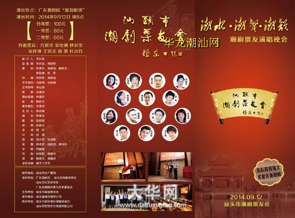 汕头市潮剧票友会自5月25日成立之后的第一场票友专场演唱会。这次参加演出的票友是经过票友会精心挑选的,在唱功、台风各方面综合水平较高的!现场演奏阵容强大,有三十多个演奏人员,二十四个班声。同时还邀请了方展荣、张怡凰、林初发、王锐光等名星名角来助阵。此次专场演唱会引起了社会各界的高度关注和得到