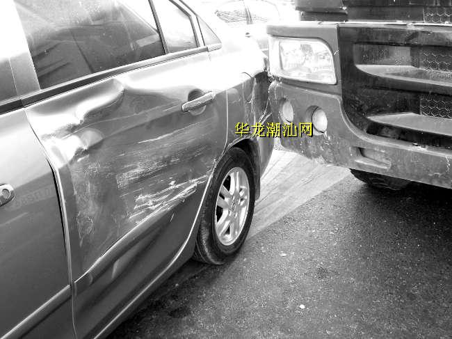 昨天下午5时多,记者接报后赶到金砂东路与黄山路交叉处事发现场时,看到一泥头车及另外两部被撞到的车辆依然紧紧地挤在一起。其中一部小轿车被撞后受损较为严重,左侧后车门出现严重凹陷变形。据现场一位知情者称,事发时这辆泥头车还撞到了另外一部轿车,那部被撞轿车的车主获得相应赔偿后,已先将车子开离现场。