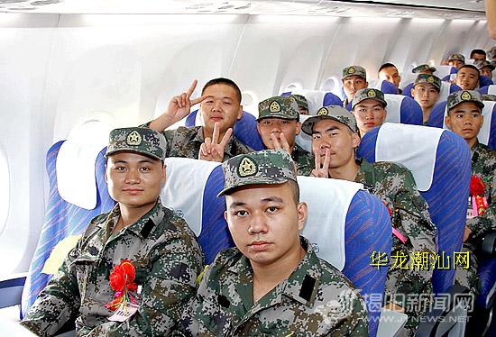 本网讯 5日中午12时,一架波音737-800型飞机搭载着首批127名揭阳籍新兵从揭阳潮汕机场腾空而起,标志着2014年度潮汕地区新兵航空运输正式拉开序幕。