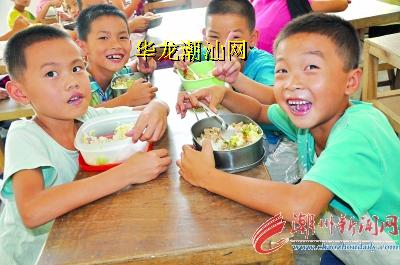 本报讯(记者陈培娜庞磊成)4日晌午,潮安区登塘镇伍全学校37名寄膳的小学生准时开饭。大家的午餐,是由学校厨房提供的胡萝卜炒肉、炒包菜和热气腾腾的米饭。据了解,从新学年开始,潮安区下拨扶贫济困专项资金为伍全学校等山区镇学校贫困学生提供午餐补助。这笔资金,让以往必须自带午餐的孩子们告别了“腌菜拌饭”,现在每天都能在学校吃上营养可口的新鲜肉菜。