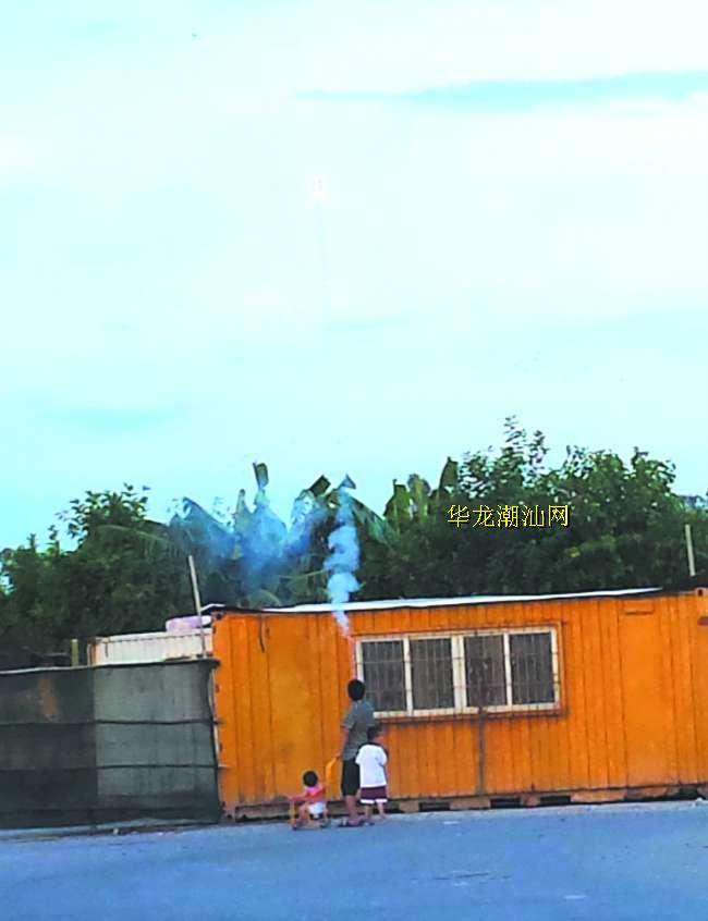 本报讯 (记者 黄泽春 摄影报道)本月9日傍晚,有热心市民向本报反映:一名中年男子在市区新一中附近一处路边燃放烟花。记者接报赶到现场发现,这名男子正站在一座木屋旁一支接一支地燃放手中的烟花,身边还带着两名小孩(如图)。也许是见到记者在拍照,这名男子很快便“收手”并“走人”。