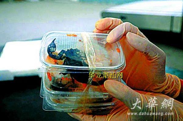 本报讯 (记者魏盼生 通讯员潘昊、李灿斌)近日,汕头出入境检验检疫局连续截获了2个内藏活体蝎子的入境邮包,这是汕头口岸首次在入境邮包中查获活蝎。目前,因寄、收件人无法提供相关检验检疫证明和入境检疫许可证,工作人员已依法对这些蝎子实施截留,并依照相关法律法规进行处理。