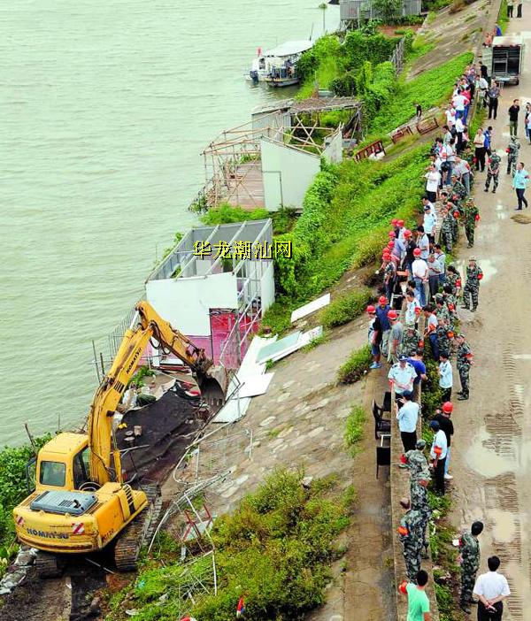 据介绍,今年8月1日我市发布《汕头市人民政府关于清理整治河道堤防管理范围内违法建(构)筑物的通知》,要求在河道堤防管理范围内的违法建 (构)筑物,应于今年8月15日之前自行拆除,恢复原状;逾期不拆除、不恢复原状的,由各区(县)人民政府组织进行强行拆除。昨天拆除违章搭建物的新津河下游河段是我市重要的饮用水源保护区,也汕头大围达标加固工程的重要节点,我市以此作为强拆工作的突破口,带动各区将清理拆除行动引向深入。在开展集中整治行动的基础上,下来我市将把工作的重点从短期内的突击整治逐步扭转到健全制度、加强日常监管上来,构建防范和整治相结合的长效机制,防止死灰复燃。
