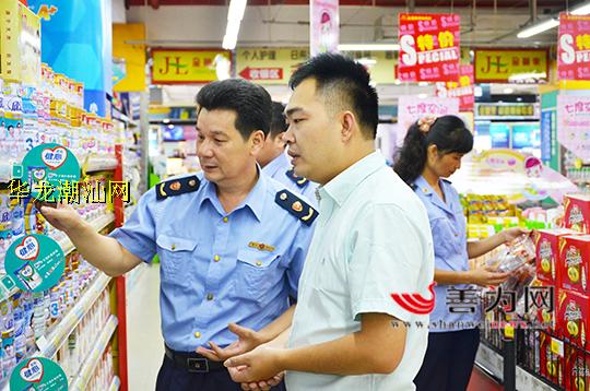 连日来,陆丰市陆城工商局出动人员加强对经营货品的巡查监管,努力维护消费者权益,力促市场繁荣稳定。图为该所人员在一超市巡查。