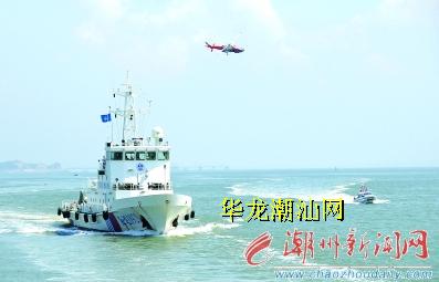 昨天,广东海事局南海海巡执法总队、潮州海事局和潮州边防支队船艇大队在潮州港附近沿海水域联合开展海空立体巡航行动。