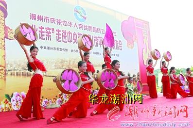 本报讯昨天下午,饶平县上林社区的文化公园里歌声悠扬,热闹非凡。原来,由市委宣传部主办,潮州市广播电视台、饶平县委宣传部协办的“文化走亲”走进中央苏区县(饶平)群众联欢会在这里举行,我市的文艺工作者欢聚一堂,为当地群众献上一道丰盛的文化大餐,为新中国成立65周年祝福喝彩。
