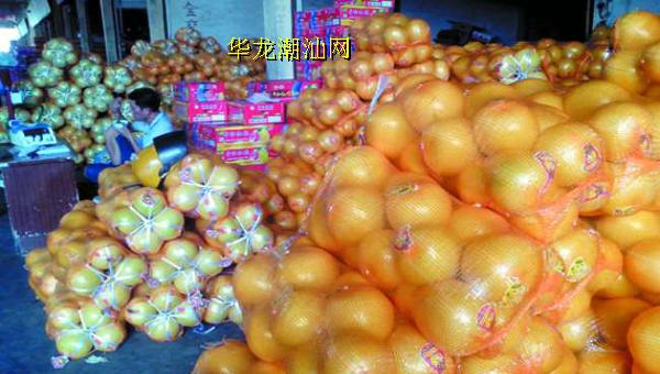 记者昨天在市区中山路、大华路、金新路等路段看到,不少临街的水果摊档门前都堆满了柚子,而且打出了每斤2元的醒目售卖价格。而一些用小型货车拉着整车柚子的水果贩子更是用大块招牌写着每斤1.7元的大甩卖价格,吸引了不少过路市民上前购买。在汕头水果批发市场走访,记者看到整个市场几乎成了“大柚场”,不少批发档口前都堆满了袋装如小山似的柚子。“批发价,每斤1.3元”,商贩们的报价基本一样。