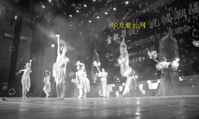 本报讯(记者 方晓F 通讯员 张春梅 摄影报道) 近日,以“金秋华诞 祝福潮阳”为主题的庆祝建国65周年晚会在潮阳影剧院举行,拉开该区庆祝国庆一系列丰富多彩活动的序幕,精彩的歌舞、曲艺、乐器表演,致力于打造潮阳本土舞台,以一个个富于“潮味”的节目为群众献上视听盛宴(如图)。该区还着力于将庆国庆活动办到基层,结合当地特色,开展“金秋华诞 圆梦启航”庆祝新中国成立65周年群众性文艺活动,在节日期间把精神粮食及时送给广大基层群众,为辖区居民带来丰富的文艺享受。