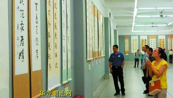 本报讯 记者周敏摄影报道:在即将迎来中华人民共和国成立65周年之际,昨天,由龙湖区委宣传部、龙湖区文广新局主办,区文化馆承办的“《格言联墨大观》出版赠书仪式暨百位书法顾问作品展”在龙湖翰苑举行开幕式。展览从《格言联墨大观》作品中挑选出100位全国各地应邀书法家顾问的精品力作进行集中展出,是汕头书法作品展览中水准最高的一次。