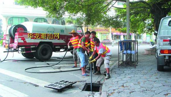 本报讯(记者 林彦恂 摄影报道) 登革热来势凶猛,防蚊灭蚊成为预防关键。连日来,我市市政部门抓紧汛期已过的时机,结合我市“美化家园”市容环境综合整治工作,在市区黄山路、汕樟路、金湖路、东厦路等路段排水清疏,解决排水不畅,也排除路面积水,防止蚊虫滋生引发登革热。