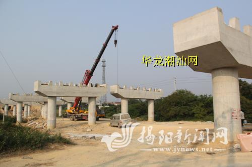 近日,记者到揭惠高速公路惠来县华湖镇路段工程施工现场采访时看到,一根根已浇筑成型的水泥桥墩矗立于田野之上,远远望去十分壮观。工人们冒着烈日奋战在施工一线,为工程的顺利推进流汗出力。