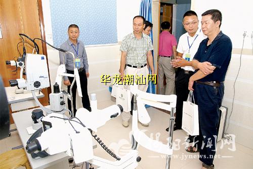 与会的眼科骨干医师参观揭东区第二人民医院眼科中心的医疗设备。陈路文 摄