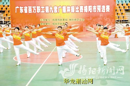 响亮的口号,充沛的精神,整齐划一的动作……4日上午,来自全市各地的7支代表队、100多名职工在榕城区体育馆展开了一场广播体操大比拼。