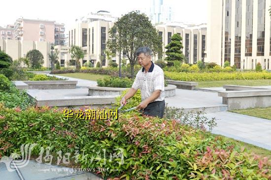 图为专职人员在市机关办公大院内修剪花木,美化办公环境。涂英鹏 摄