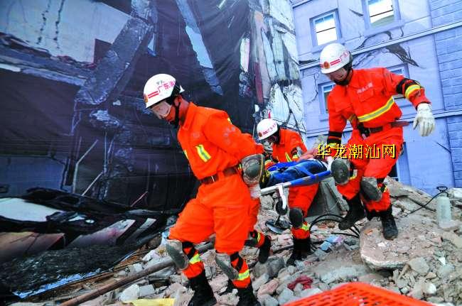 本报讯(记者 黄泽春 袁笙 摄影报道) 昨天上午,由市政府、省地震局主办,汕头市地震局、汕头市应急办承办的广东省(汕头)地震应急救援综合演练在汕头火车站站前广场举行。中国地震局副局长赵和平、中国地震局应急救援司副司长尹光辉,广东省地震局局长黄剑涛,市领导陈茂辉、郑人豪、张应杰现场观摩演练活动,副市长李耿坚担任演练总指挥长。