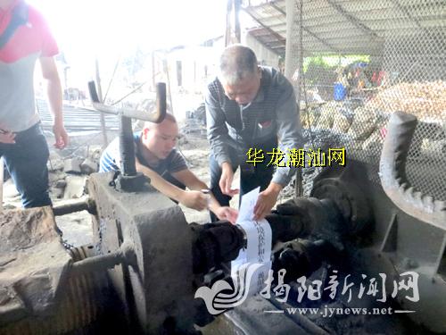 榕城区环保安监局近期接到举报,称有个别小轧钢企业顶风作案,存在偷偷生产行为。该局执法人员巡查发现6家小轧钢企业存在非法生产现象。6日下午,该局再次联合相关部门和街道,对被举报仍存在非法生产行为的土轧钢厂进行联合执法。行动中,记者随执法人员来到位于梅云街道伯劳社区、仙桥街道高湖社区的小轧钢企业,看到这些企业都属于小作坊,生产设备简陋,并用煤炭作为能源。部分企业的设备还散发着余温,表明在此之前还在进行生产活动。执法人员当即对这些企业的生产设备进行查封。