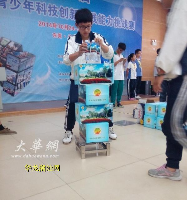 近日,在第二届广东省青少年科技创新实践能力挑战赛中,来自新溪第一中学的两组共四名学生在“首屈一‘纸’”比赛中以全省第五名和第八名的优异成绩被评为初中组一等奖。其中,新溪一中初三学生谢文与谢惜芸作为合作拍档,用三张A4纸承受住七八十斤矿泉水的重量。