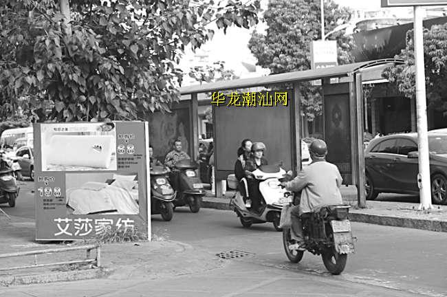 11月10日下午,记者来到现场走访。在东厦北路市福利院隔壁,记者看到,一商户将两块一个人高的红色广告牌摆到接近机动车道的人行道上,广告牌上印有“艾莎家纺,全场2折”的字样,十分抢眼(如图)。据市民谢先生介绍,商家把广告牌摆到路边已经有一个月的时间了,经常有机动车驾驶员途经此处时被广告牌挡住视线,一不小心就很容易撞上过路的行人。“广告牌前面有一个公交车站,有时搭车的市民急匆匆地过马路,很容易被车撞到。”谢先生告诉记者,此处有十条公交线路途径该站点,每天在此搭乘公交车的市民非常多,有好几回着急过路搭车的市民差点被过往的机动车撞到。