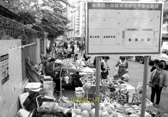 珠池街道办事处副主任陈文欢介绍,根据2013年《汕头市政府工作报告》,珠池街道被选为2013年汕头市和龙湖区小贩疏导工程的试点单位。由于街道执法中队只有10多名行政执法人员,管理区域面积却多达13.6平方公里,执法人员每天奔波多处,管理效果却不如人意。从今年11月1日起,他们在前期调查摸底、公示告知的前提下,详细了解掌握金涛庄周边流动小贩的分布数量、分布范围,在“公开、公平、公正”的原则上,对辖区参照试点区域划分标准划定禁设区、控管区和疏导区。其中,重点在金涛西一街(金涛小学北侧人行步道)规划设立了统一的流动摊位,共设置80多个疏导摊位,对室外流动小贩进行固化,进一步规范占道经营摊点的管理,解决民生问题。