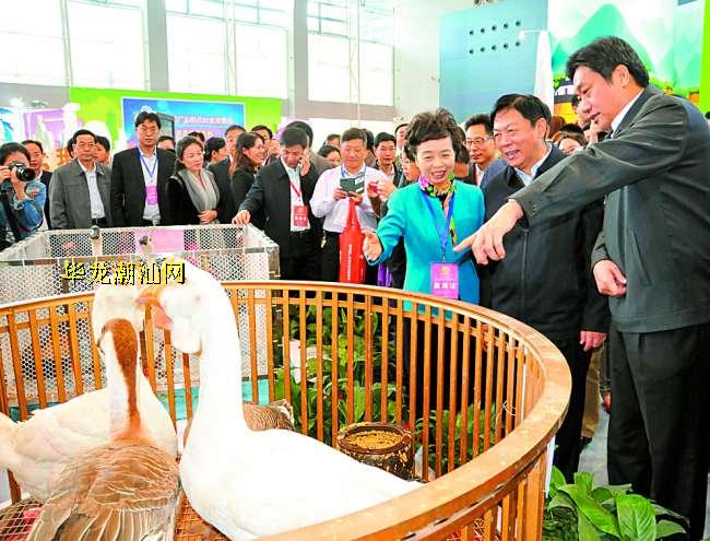 本报讯 记者刘文钊摄影报道:昨天,由广东省人民政府主办,农业部支持,广东省农业厅承办的第五届广东现代农业博览会(以下简称农博会)在广州琶洲会展中心开幕,副省长邓海光出席开幕式并为10家广东名牌产品企业代表授牌。我市白沙禽畜原种研究所培育的“狮头牌”狮头鹅在众多竞争对手中脱颖而出,荣获广东十大名牌系列农产品广东名鹅第一名。