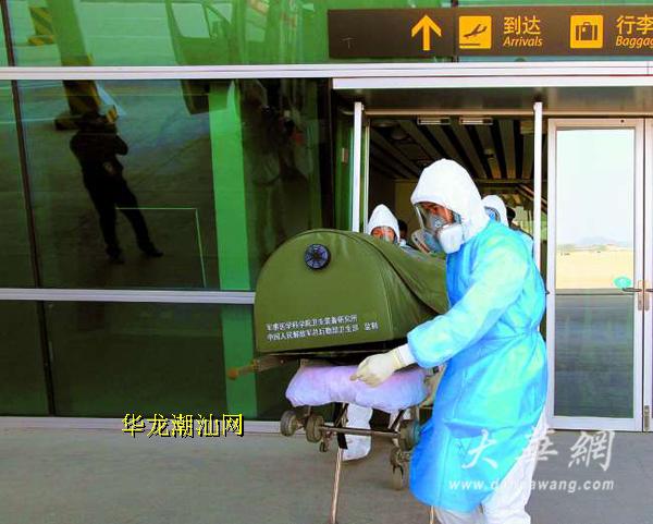 昨天上午,潮汕机场举行“埃博拉”出血热疫情防控应急演练。演练模拟一旅客从西非某国乘坐入境航班抵达潮汕机场时,出现发热(38.8℃)、头痛等症状,机场检验检疫部门对其进行检查,发现符合“埃博拉”疑似病例诊断标准。潮汕机场公司、机场检验检疫、医疗卫生等相关部门立即按应急处置程序,开展病人转运、现场隔离、卫生处理、密切接触者管理等工作。