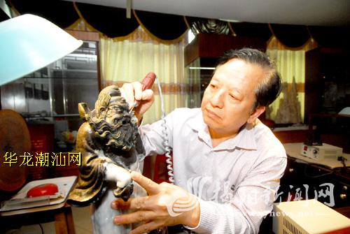 中国玉雕艺术大师洪荣辉也在加班加点完成作品的修尾工作。他为玉文化节系列活动之一的大师作品展精心准备了近10件作品,包括摆件、挂件、玩件等。连日来,他加班加点,抓紧完成一组《贪者戒》作品创作的收尾工作。