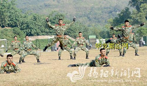 武警表演摔擒技能。