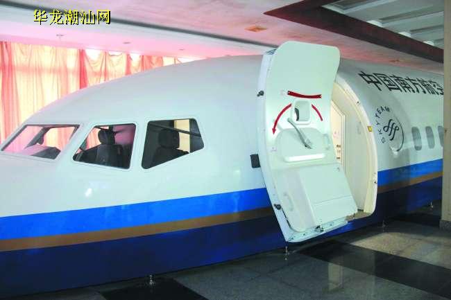 一架长达17米的“大飞机”亮相D城。记者昨天走访南航汕头航空有限公司了解到,汕航投资近百万元建设的粤东地区首个波音737-800型飞机客舱综合训练模拟器正式通过验收,目前已投入使用。