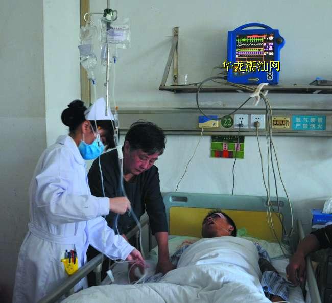 据吴女士介绍,25日下午约5时半,她突然接到一个电话称她的孩子摔在地上流了好多血。吴女士闻讯慌忙赶到汕大医附二医院,发现孩子满脸是血,浑身是伤。“当时我的孩子还神智清醒,流着泪说‘妈咪,我被他们十多人打了,他们好狠好凶啊,有一个还拿着刀,我逃都逃不掉,从3楼跌落下来了’,我当时心如刀绞啊!”吴女士回想起当时的一幕泣不成声。经医院检查,小超全身多处骨折,颅脑出血,第4腰椎骨压折,左眼角缝合多针。25日傍晚入院后,孩子不时抽搐,浑身发抖,随后逐渐口齿含糊不清,还伴随两次呕吐。