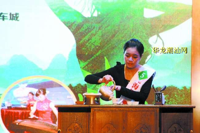 26日晚,首届“海堤”潮汕形象大使选拔赛正式迎来了“20进10”半决赛。经过一连串密集式的培训,20强选手当晚盛装打扮,现场展示了形体礼仪及茶艺冲泡技法(上图)。其中,有选手专程从上海搭乘飞机回来参赛,除了与其他选手角逐,还表演了曾在上海世博会演绎的茶艺舞蹈。