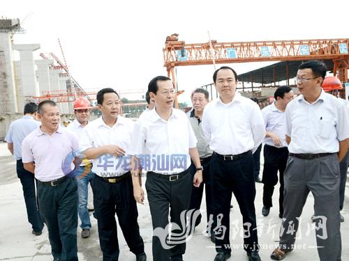 汕湛高速横江河特大桥建设现场一派热火朝天,市领导戴着工程帽,站在桥下,仰望着正在施工的几十米高的高速公路桥,认真察看工程建设情况;在汕湛高速大溪隧道施工现场,市领导走进已基本完工的隧道里面,详细询问工程建设中遇到的困难和问题。陈绿平等市领导对揭西县全力营造无障碍施工环境,建设方夜以继日施工,多方合力推进工程顺利建设的做法表示满意;在中德金属生态城建设现场,陈绿平认真听取汇报,了解建设进度,强调要坚持既定发展思路不动摇,千方百计加快项目建设步伐,推动项目尽快建成投产、产生效益,真正在创新办园模式、深化对外合作、推动产业转型升级等方面取得更大突破;来到空港新城中央商务区建设现场,看到总投资超112.6亿元的11个总部项目正在加紧建设,陈绿平给予充分肯定,强调这批项目的建设是新城建设的重中之重,一定要加快建设进度,带动空港新城全面建设;在大南海石化工业区,首期投资586亿元的中委广东石化炼油项目及产品码头施工项目建设进展顺利,陈绿平强调全市各级各部门要全力以赴服务主体工程建设,加快推进相关配套建设,确保项目按期顺利建成;……