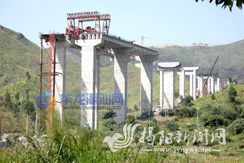 横江河特大桥桥柱高度普遍在33~55米,桥长2008米,宽34.5米,双向6车道。据横江河特大桥承建单位广东省长大公路工程有限公司项目部副经理冷加金介绍,大桥预计总投资约2亿元,目前已完成投资额1.4亿多元,约占工程量的70%,大桥将于2015年底竣工通车。“大桥开工仅1年多时间,就完成投资额的70%,这要归功于市、县、镇各级领导的全力支持和当地老百姓的积极配合,归功于各级交通部门同心协力的帮助,为我们创造了无障碍施工的良好环境,接下来我们一定会全力以赴,确保高效高质完成建设任务。”冷加金信心十足地表示。