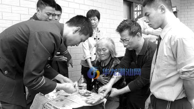 12月1日下午,一名老妪在亲友陪伴下神情焦虑地来到潮阳消防大队寻求帮助。原来,老妪是一名聋哑人,两天前左手手指被开水烫伤,家里人一直不知道,直到手指淤血发炎肿胀,导致戒指紧嵌在肉中无法取下,家人发现后立即送往医院治疗,但医院也束手无策建议他们前往消防部门寻求救助。消防官兵经现场观察,老妪的手指由于长时间被戒指卡着,血液不通,手指肿得非常严重,要实施剪切的缝隙太小,很难操作。消防官兵最后决定用手磨机进行“除戒”作业,一人操作手磨机,一人固定戒指,另一人则负责用冷水淋浇戒指降温,以免手磨机切割产生的热能二次伤害老人手指。10分钟后,老妪手指上的戒指被磨断取下,她的亲友向消防官兵连声感谢。图:消防官兵为老妪包扎伤口。