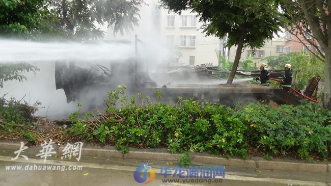 4日下午3时许,金叶岛门口有一辆货车发生自燃,龙湖消防一中队接报后快速到场,经现场侦查,该货车已燃烧得面目全非,消防指挥员立即疏散附近围观群众,同时用水枪进行灭火,5分钟后明火被完全扑灭。 本报记者 林子海 林鹏 摄影报道