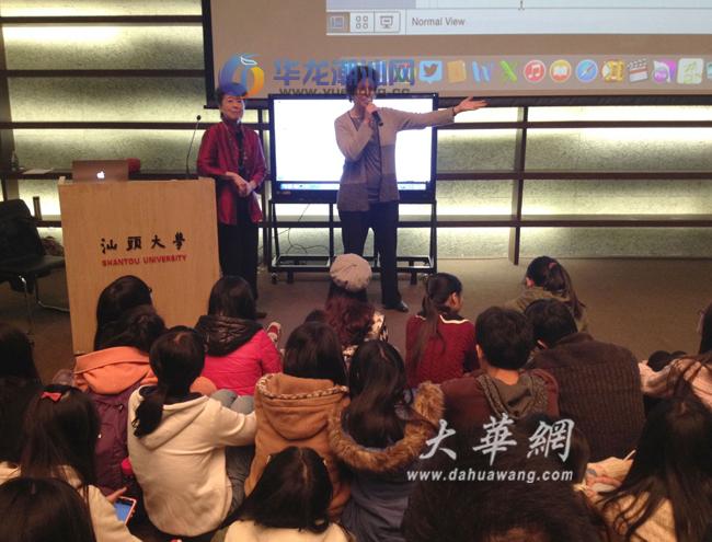 本报讯 (记者邓丹丹摄影报道)12月3日至4日,奥斯卡获奖纪录片导演Debra Chasnoff及美国著名作家、记者Helen Zia莅临汕头大学,与汕大师生一起分享获奖奥斯卡纪录片背后的故事(如图)。 Debra Chasnoff现为电影公司GROUNDSPARK的主席和资深制片人,她主要关注正义、青少年和偏见等社会议题,其制作的纪录片《Deadly Deception》(《致命谎言》)获奥斯卡最佳纪录片奖。多年来,她执导的一系列影片还获得包括多个国际电影节的最佳纪录片大奖。Helen Zia(谢汉兰)是美国著名的华裔作家、记者和社会活动家,她数十年来为亚裔的权益呼吁奔波。她是普林斯顿大学首批就读的女性,她和她的爱人是美国加州第一批登记结婚的同性恋伴侣。 莅汕期间,两人举行了以“欺骗与歧视”和“成长的烦恼”为主题的演讲。她们为汕大师生放映了获奥斯卡最佳纪录片奖的《致命谎言》及获奥斯卡最佳纪录片提名的《Who Killed Vincent Chin》(《谁杀了陈果仁》),还播放了反映美国年轻一代性别倾向问题的纪录片。他们还就美国政府与大企业对民众的欺骗行为、美国社会对亚裔群体的歧视现象以及美国部分年轻人对于性别倾向的迷茫等社会热点话题,与现场汕大师生展开热烈探讨,独特的视角和犀利的话题让不少汕大学子大开眼界。