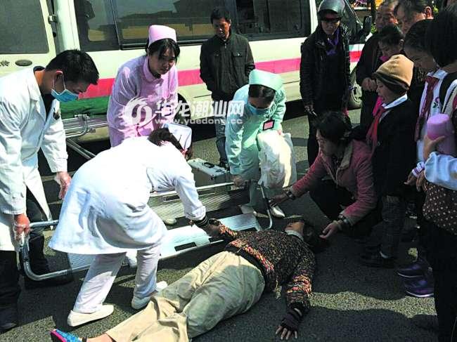 记者现场看到,几名路过此地的阿姐很快围拢过来,大家团团围住躺在路面的老奶奶,保护她不再受意外伤害。有的阿姐掏出手机报警并拨打120;有的柔声安抚吓得脸色发紫的小马;有的俯身询问老人的情况。不久,120救护车也从马路对面开来,“短发姐”心急地跳到路中央,挥舞着双手高声喊:“这里,在这里!”于是,120救护车调头来到现场,医生、护士和热心大姐们一起合力把老奶奶抬上救护车,送往医院诊治。
