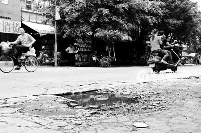 记者沿着东厦北路拐入珠峰南路往西方向行走,只见路面崎岖不平,破损十分严重,听周围群众倾诉,每逢下雨天,这些破损的路面就变成各种形状大小不一的“水坑”,车辆一经过就溅起了污水,影响了过往的市民,记者粗略估算了一下,在东厦北路至金新北路近500米路段,就有20多处受损,其中破损较为严重有10处左右。在珠峰南路经营日杂多年的林女士告诉记者,以前这里比较偏僻,道路通行十分畅通。近年来,随着附近农贸市场、学校、医院以及新建的住宅小区越来越多,人流车流日渐增大,路面破损一年比一年严重。由于店前路面破损严重,周围有的店主自己掏腰包进行修补。