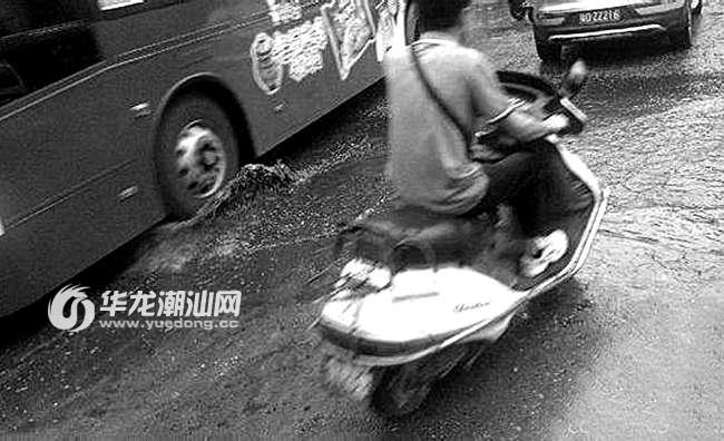 记者在多家饮食店前看到,前来这里用餐的顾客数量不少,车辆乱停乱放的现象较为突出。这样一来,本来并不宽阔的路面变得更加拥堵难行。记者看到,过往的车辆包括多路公交车、私家车、摩托车,以及学生骑单车穿行其间,有的车辆为了绕开地面的“水坑”,差点就与其他车辆相撞,让人触目惊心。