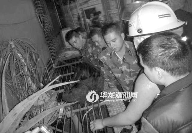 本报讯(记者林子海 林鹏 摄影报道) 前天傍晚,市区金骏园小区内一女子攀爬上六楼窗台意欲轻生,关键时刻,接报警赶到现场的金平消防二中队官兵紧急处置,展开了救援行动,很快把轻生女子安全救下。目前,女子轻生原因还在进一步调查中。