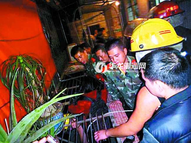 10日晚7时许,华侨新村金骏园10栋6楼有一名女子欲轻生。金平消防二中队迅速出动抢险编队火速赶赴现场救援。在现场,该女子坐于六楼窗台顶层铁皮架上,面朝外部,双腿悬空在外,头顶处是居民家的防盗铁架网,且周围没有任何保护措施,女子情绪很不稳定,情况十分危急。