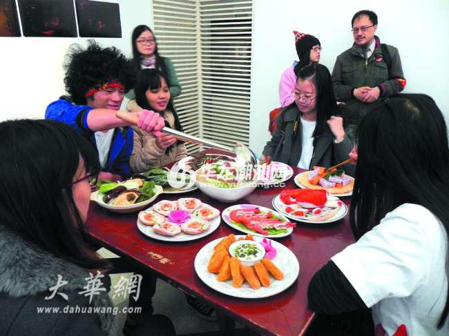 羊毛制作的潮菜太逼真,参观者欲尝鲜:“快来吃吃看!”