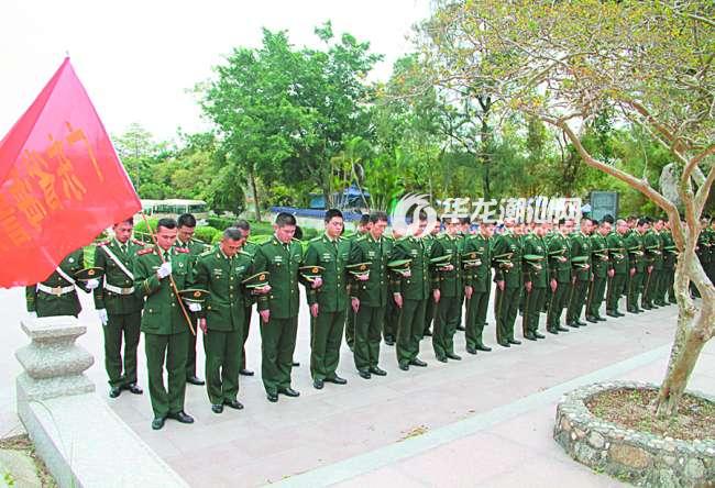 图为驻汕海警二支队12日组织官兵前往潮阳区海门莲花峰“万人冢”举行参观悼念活动,教育官兵铭记历史,勿忘国耻,激发官兵的爱国情感和民族责任心。