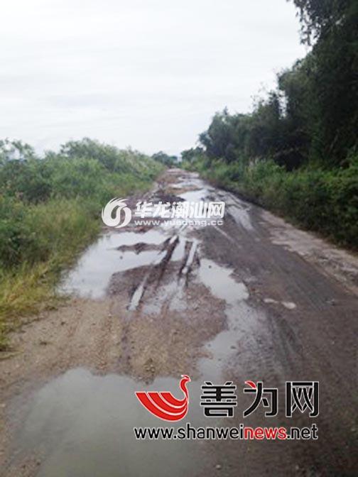 但如今却因该公路年久失修,路基不固,到处坑坑洼洼,晴天尘土飞扬,雨天泥泞不堪,特别是夏季多雨和台风,给沿途诸多村庄的群众在交通、生产方面带来十分的不便,更令他们担忧防洪的安全,已成当地人的心头之患,而热切呼吁重修该条路。图为该公路雨天中的路况。
