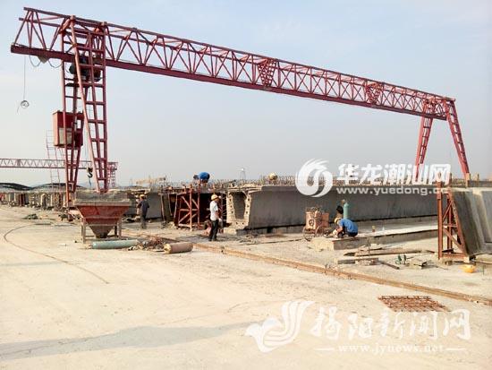 抢抓施工黄金季节,项目建设加快提速在潮惠高速公路登岗段建设现场,记者看到,施工人员正在加紧进行制梁、架梁和盖梁工作,施工现场一片热火朝天。据施工人员透露,在项目的推进建设中,当地党政领导从最迫切,最急需解决的问题入手,循序渐进解决实际问题,为项目的顺利推进创造最佳的施工环境。进入旱季以来,项目建设加快提速,加大了人员、机械设备的投入,现在工地里每天大约有1200人在施工,实行三班倒。目前,登岗段累计完成桩基1190根,承台、系梁275个,墩柱541根,盖梁118个,预制梁497片,完成该段项目工程量的40%.孙庆炉表示,潮惠高速公路空港段是省、市重点交通项目,工程完工后将进一步完善空港经济区的交通网络,优化交通基础条件,巩固交通枢纽地位,有力提升区域优势,作为施工方,将紧抓旱季施工的黄金时期,按照相关部门的要求,安全有序推进项目建设,确保潮惠高速公路2016年底建成通车。